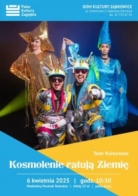 6 kwietnia o 10:30 zapraszamy do Domu Kultury Ząbkowice na kolejną odsłonę cyklu Niedzielne Poranki Teatralne, w ramach którego odbędzie się widowisko dla dzieci pt. Kosmolenie ratują Ziemię w wykonaniu Teatru Kultureska.