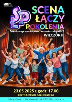 23 maja o godz. 17:00 zapraszamy do Sali Konferencyjnej (218, I piętro) na trzeci wieczór z cyklu Scena Łączy Pokolenia, w trakcie którego zaprezentują się uczestnicy amatorskiego ruchu artystycznego Pałacu Kultury Zagłębia. Tym razem scena będzie należeć do wokalistów i miłośników sztuki kabaretowej.